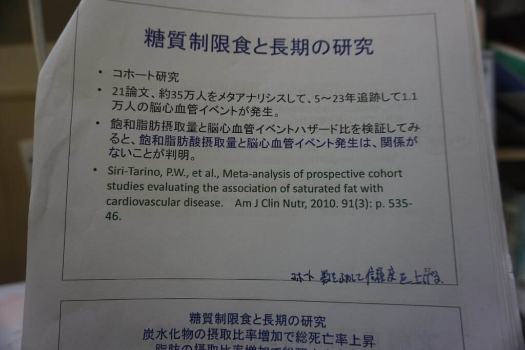 糖質制限と長期の研究・・・飽和脂肪酸摂取量は脳心血管イベントを増やさない